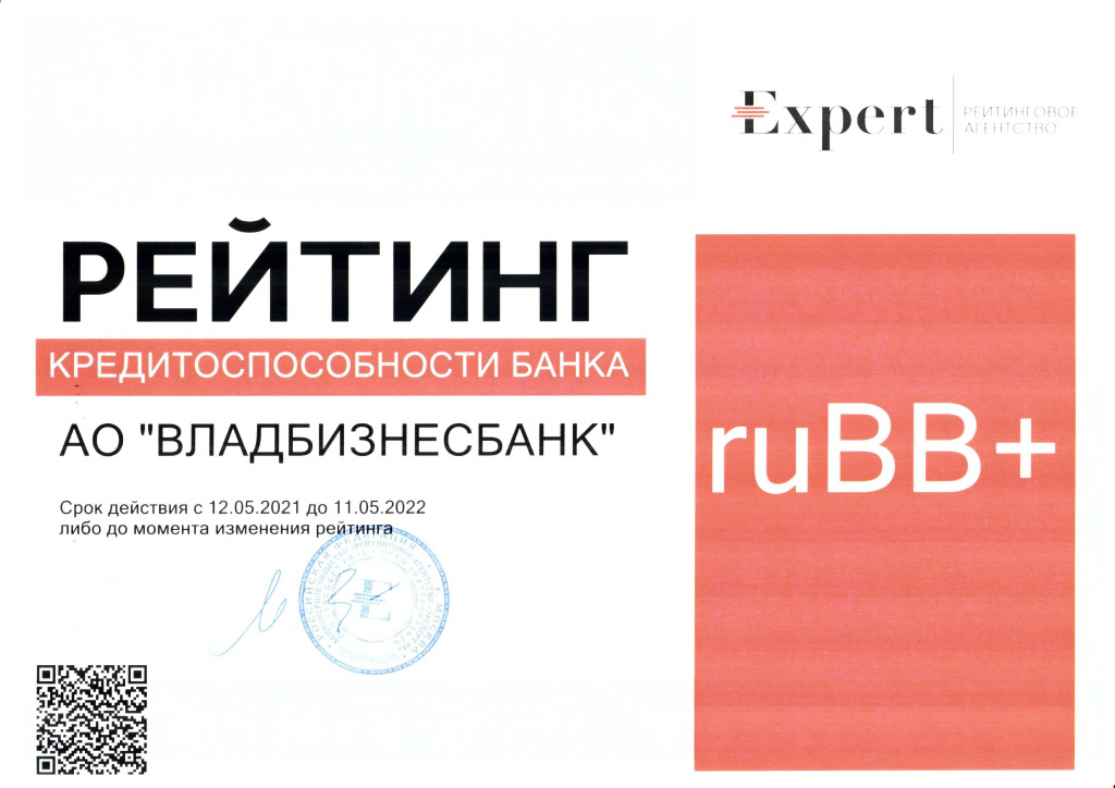 Сообщаем, что 30 апреля 2021 года рейтинговым агентством «Эксперт РА» проведена процедура актуализации рейтинговой оценки АО «ВЛАДБИЗНЕСБАНК».